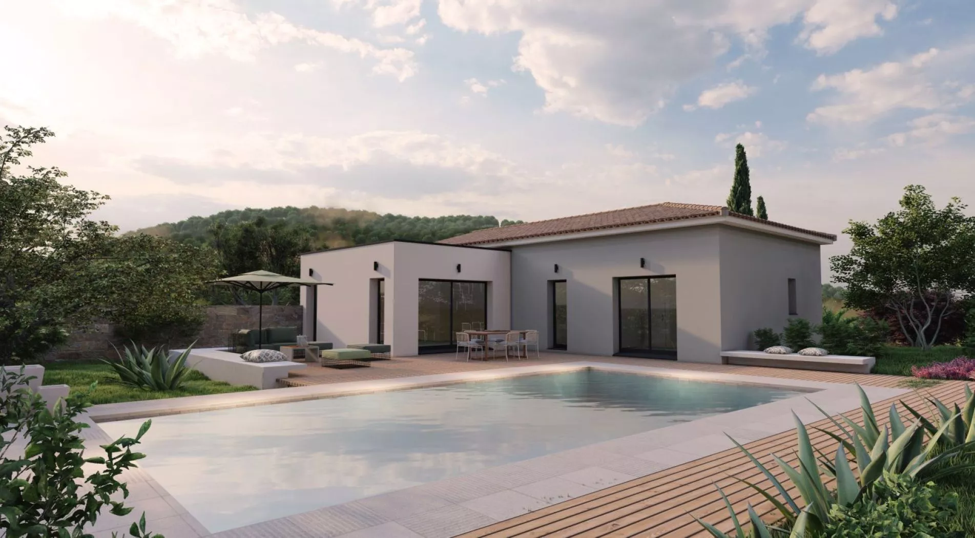 A LAURET sur un terrain de 760 m², 2A VILLAS vous propose de réaliser cette maison neuve d'une surface de 110 m² habitables avec 3 chambres.