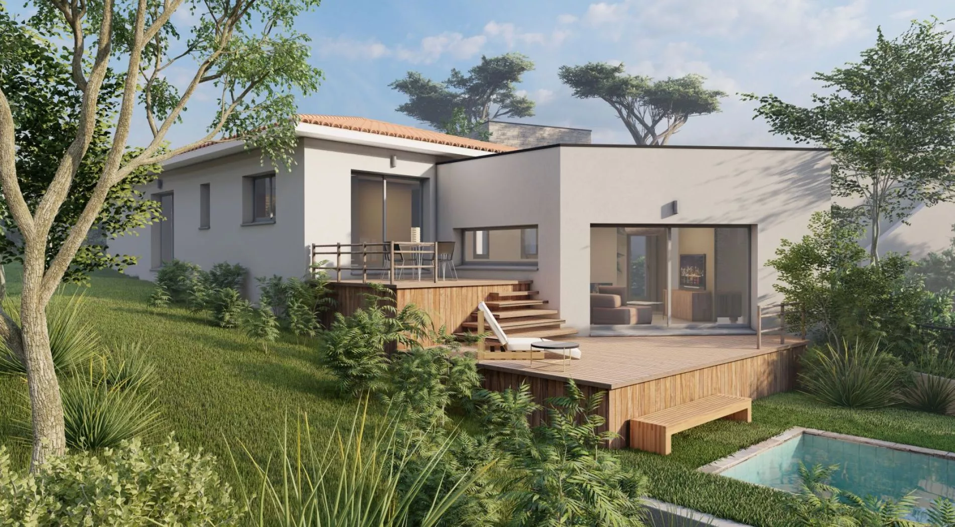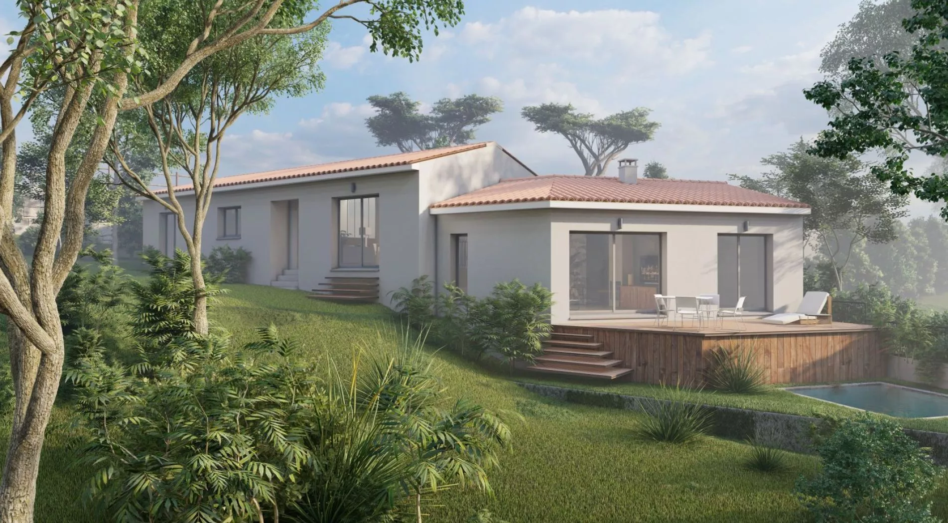 Prix avec assurance dommages-ouvrage comprise, VRD compris, terrain viabilisé, frais de notaire non compris, frais divers non compris. Terrain sélectionné et vu pour vous sous réserve de disponibilité et au prix indiqué par notre partenaire foncier. Conditions et visuels non contractuels.
