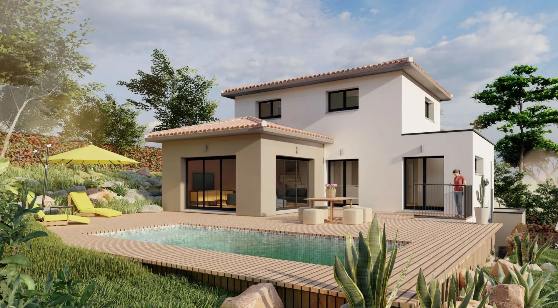 A POUSSAN sur un terrain de 250 m², 2A VILLAS vous propose de réaliser cette maison neuve d'une surface de 95 m² habitables avec 3 chambres.