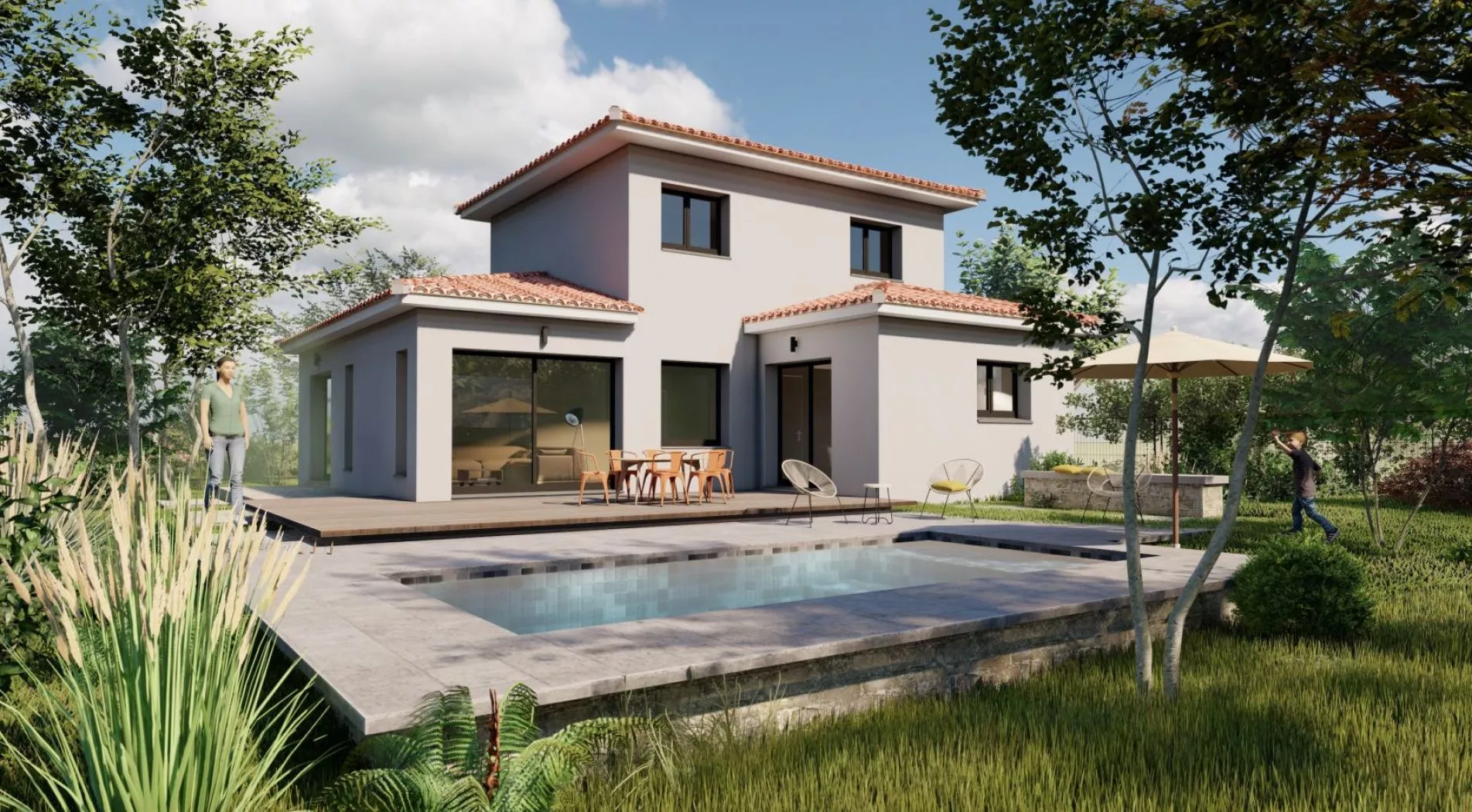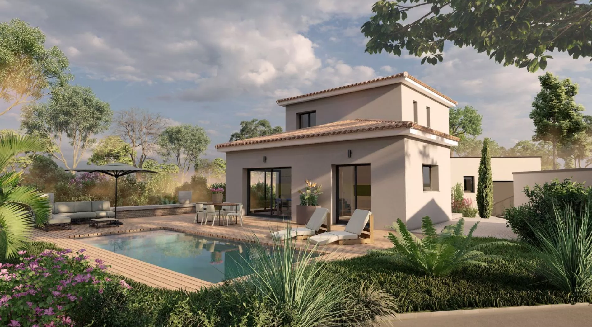 A SAUSSAN sur un terrain de 529 m², 2A VILLAS vous propose de réaliser cette maison neuve d'une surface de 125 m² habitables avec 4 chambres.