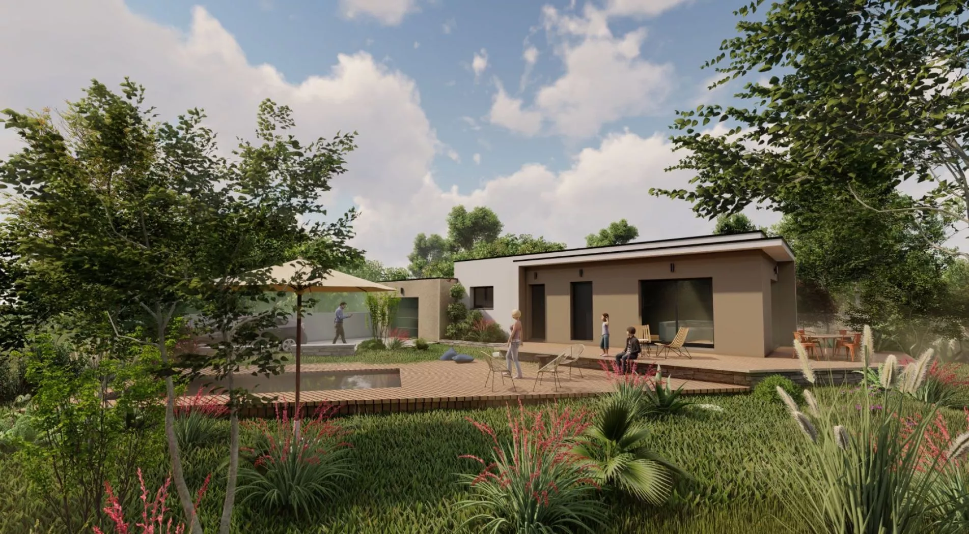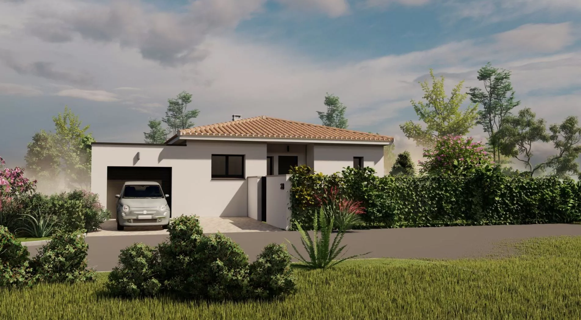 A THEZAN-LES-BEZIERS sur un terrain de 349 m², 2A VILLAS vous propose de réaliser cette maison neuve d'une surface de 100 m² habitables avec 3 chambres.