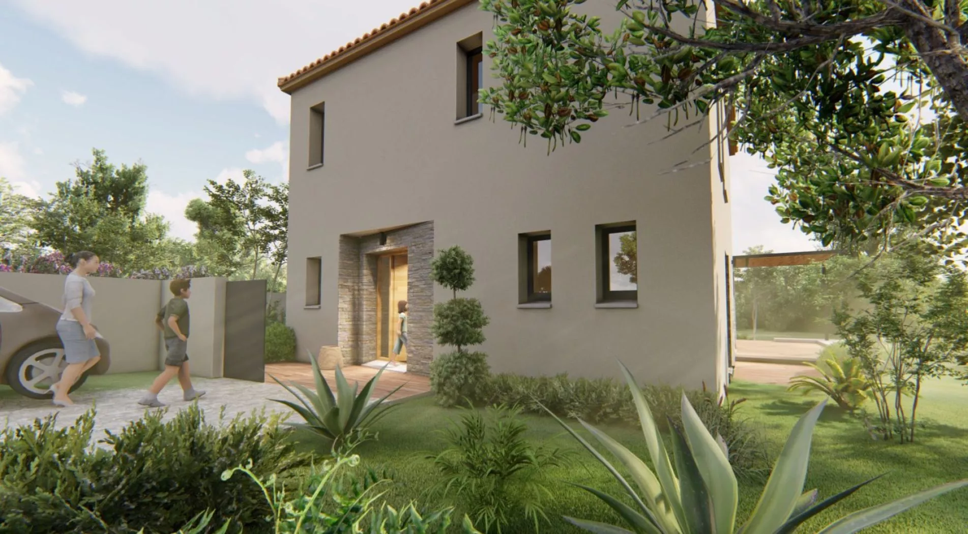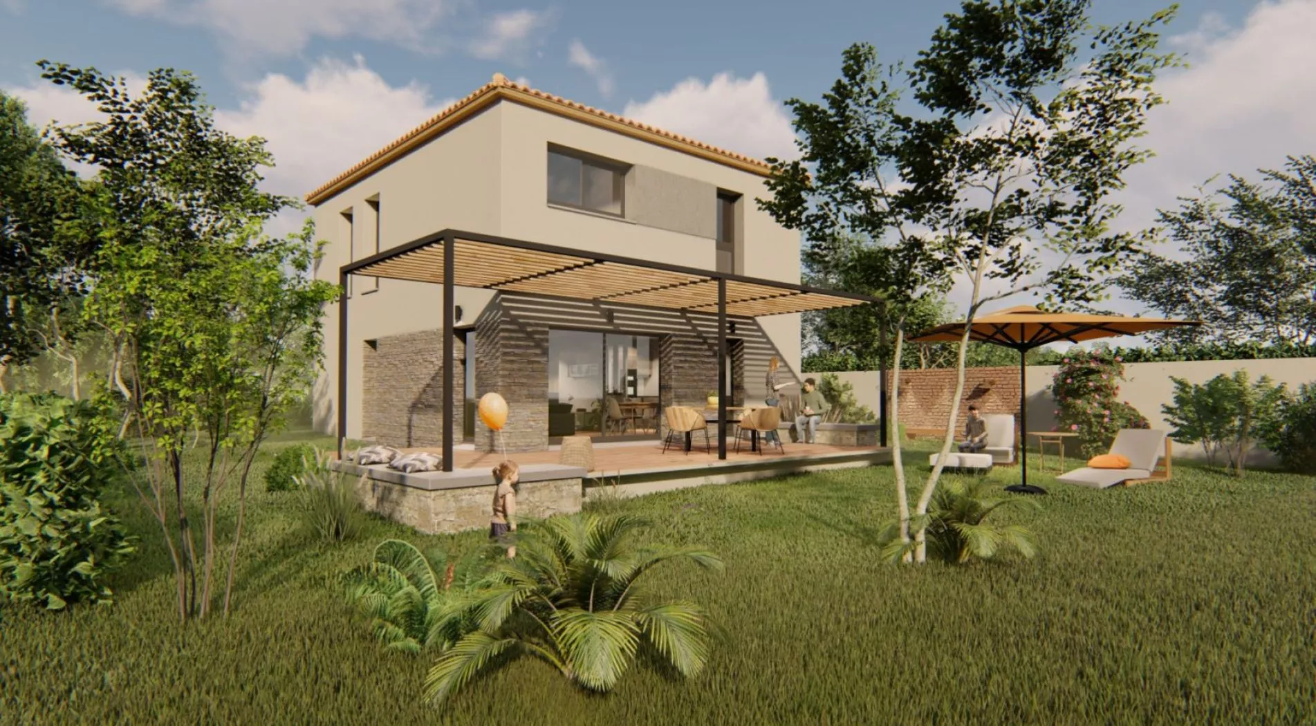 A THEZAN-LES-BEZIERS sur un terrain de 349 m², 2A VILLAS vous propose de réaliser cette maison neuve d'une surface de 90 m² habitables avec 3 chambres.